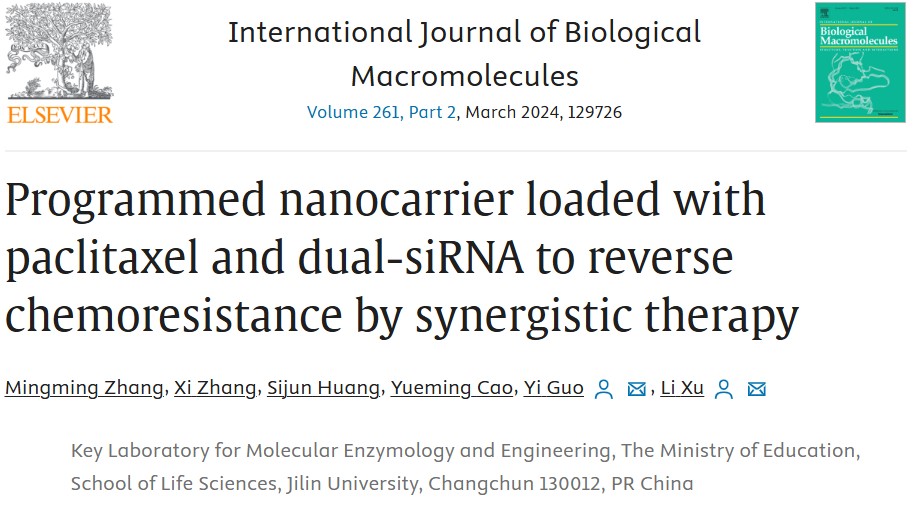 此外,在纳米药物载体方面,为增加PTX的水溶性以及缓解肿瘤耐药性,徐力郭轶教授团队以甲基丙烯酸羟丙酯(HPMA)作为亲水外壳,制备得到一种具有良好安全性和稳定性的阳离子共嵌段聚合物PPEMMRA,实现了多种耐药蛋白siRNA和PTX的共载和分步释放,在体内可以成功地将药物递送到肿瘤组织中。多种siRNA和PTX联用,可以抑制肿瘤细胞迁移,促进活性氧(ROS)释放,诱导肿瘤细胞凋亡,在耐药肿瘤细胞中具有强烈的抗肿瘤效果,进而逆转耐药性发生。研究论文“Programmed nanocarrier loaded with paclitaxel and dual-siRNA to reverse chemoresistance by synergistic therapy”发表在国际学术期刊《International Journal of Biological Macromolecules》上。论文第一完成单位为果冻传媒