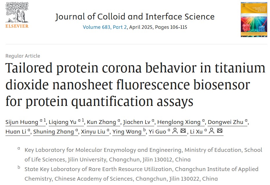 分子酶学工程教育部重点实验室徐力教授、郭轶教授团队发现,Tween-20分子能够改变二氧化钛纳米片(TiO₂-NS)对蛋白质的吸附行为,并由此开发了一种Tween-20介导的定制蛋白质冠方法,并以此实现对微量蛋白的定量。基于密度泛函理论(DFT)计算和分子对接的模拟结果,Tween-20可以通过聚乙二醇嵌段的亲水端与TiO2-NS表面相结合,同时疏水端与微孔板上吸附蛋白的疏水区域结合,从而增强二者的相互作用。在此基础上,建立了一种反向捕获策略,即通过微孔板上结合的微量蛋白捕获缓冲液中的TiO2-NS,进一步利用捕获的TiO2-NS的光催化作用产生可检测的荧光信号,实现对蛋白的定量分析。研究论文“Tailored protein corona behavior in titanium dioxide nanosheet fluorescence biosensor for protein quantification assays”发表在国际学术期刊《Journal of Colloid and Interface Science》上。论文第一完成单位为果冻传媒