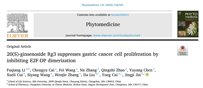 蔡勇教授/金景姬教授团队在胃癌治疗机制研究领域取得重要进展,相关研究“20(S)-ginsenoside Rg3 suppresses gastric cancer cell proliferation by inhibiting E2F-DP dimerization”发表于国际学术期刊(Phytomedicine.2025,141:156740),为胃癌的治疗提供了新的理论依据和潜在策略。