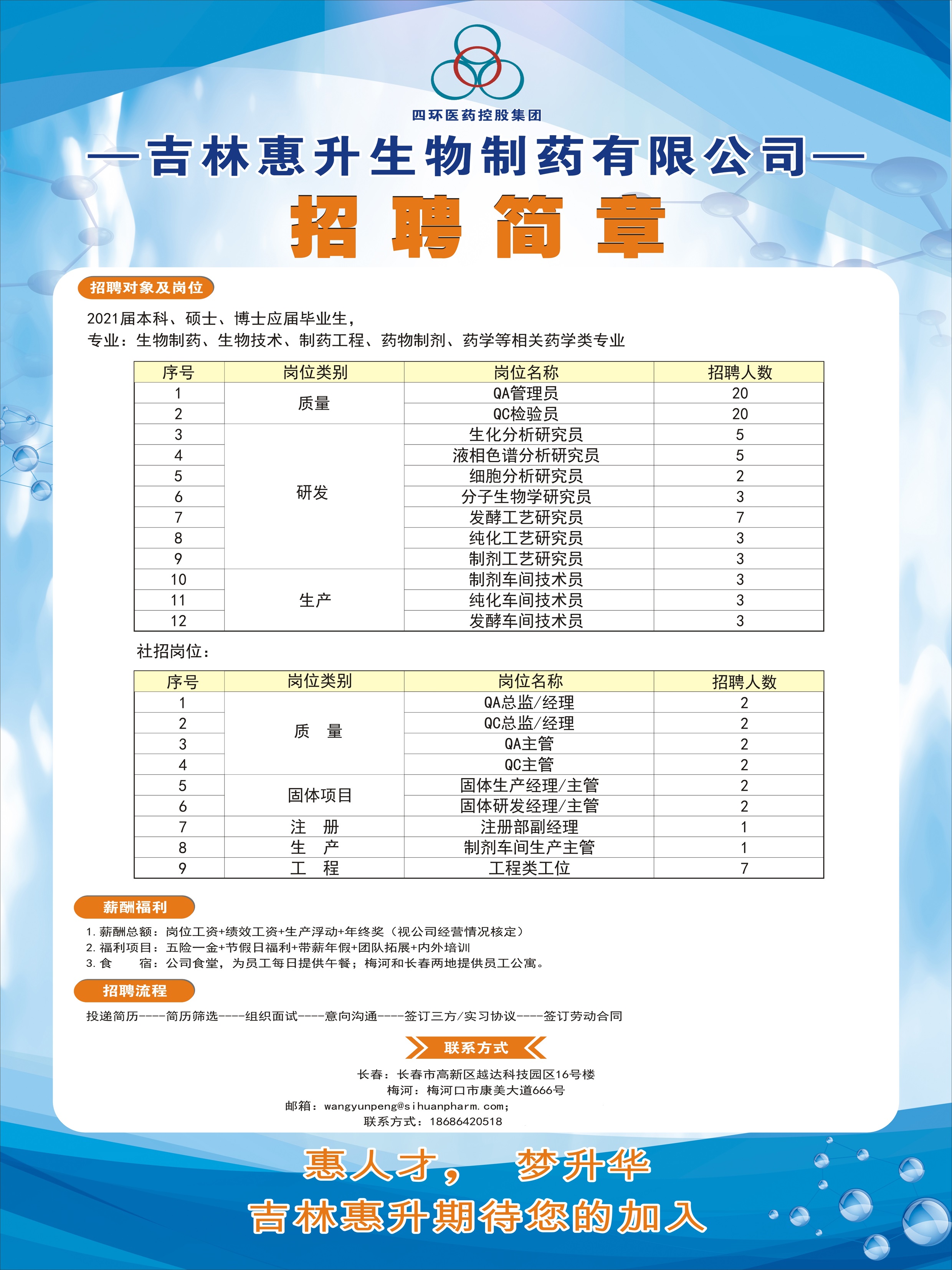 吉林惠升生物制药有限公司2021招聘信息