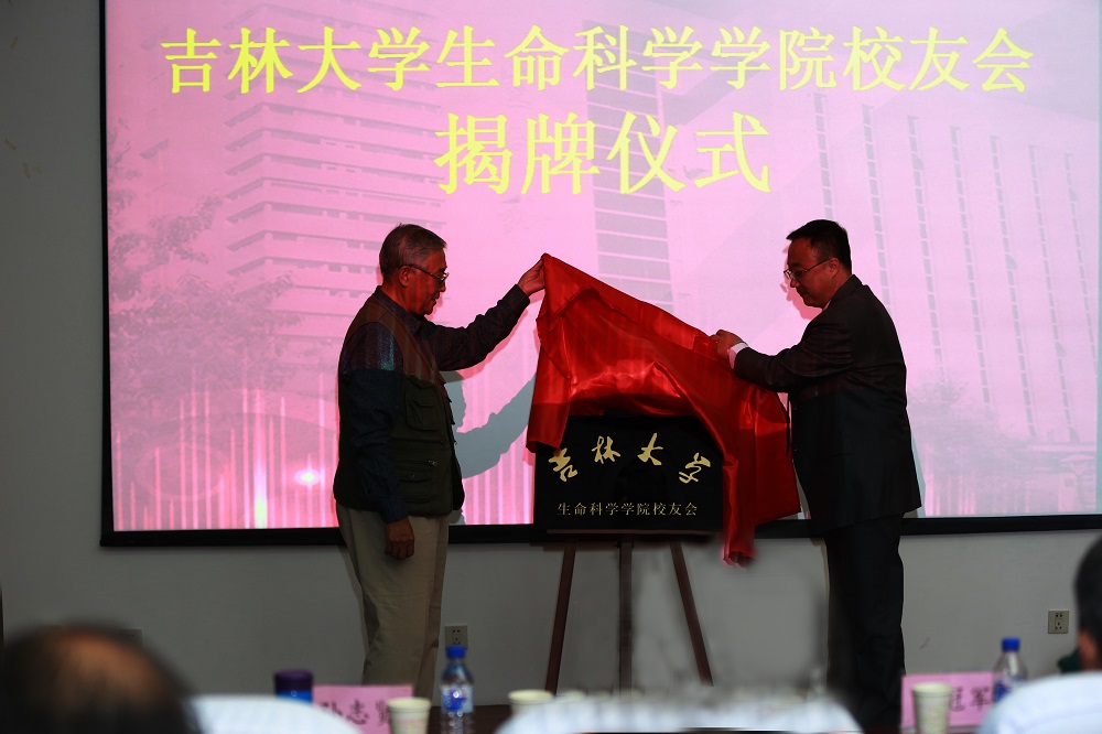 副校长赵宏伟、校友孙志贤共同为学校校友会揭牌。