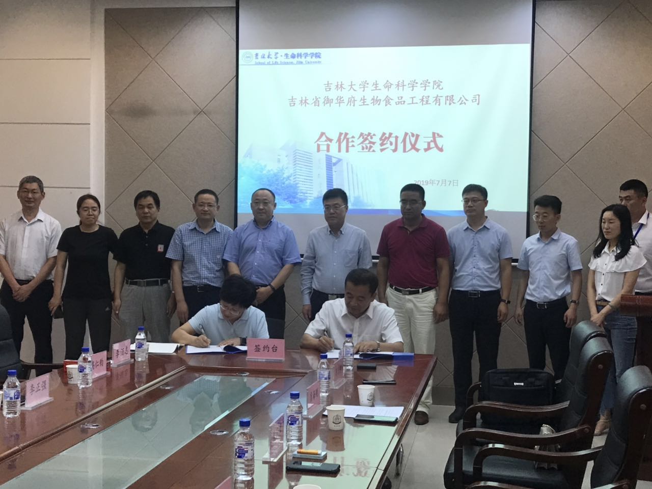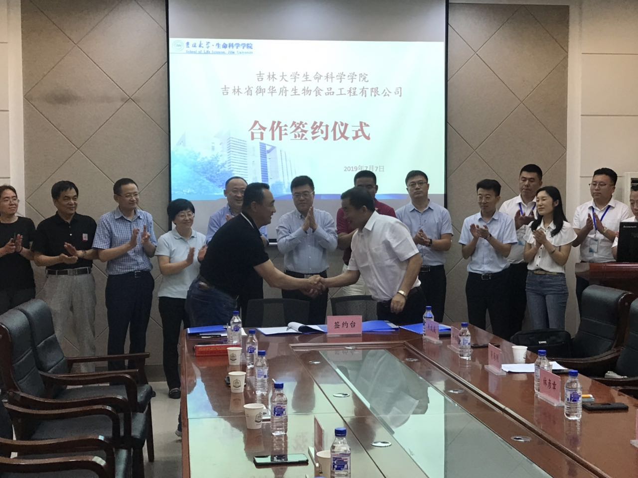 与吉林省御华府生物食品工程有限公司合作签约仪式在生命科学楼335室举行。学校科技开发中心副主任张涛,果冻传媒