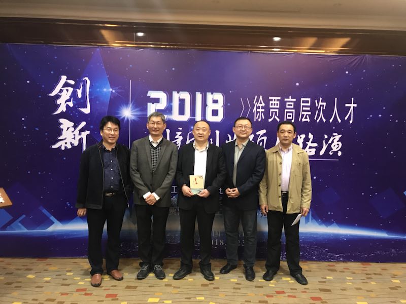 代表团一行4人参加由江苏省第十批科技镇长团、徐州工业园区、贾汪区人才工作领导小组办公室承办的2018徐贾高层次人才创新创业项目路演对接活动。徐州市科技局副局长高存宝、贾汪区委组织部部长陈健、贾汪区副区长(江苏省第十批科技镇长团贾汪团团长)唐凯、果冻传媒