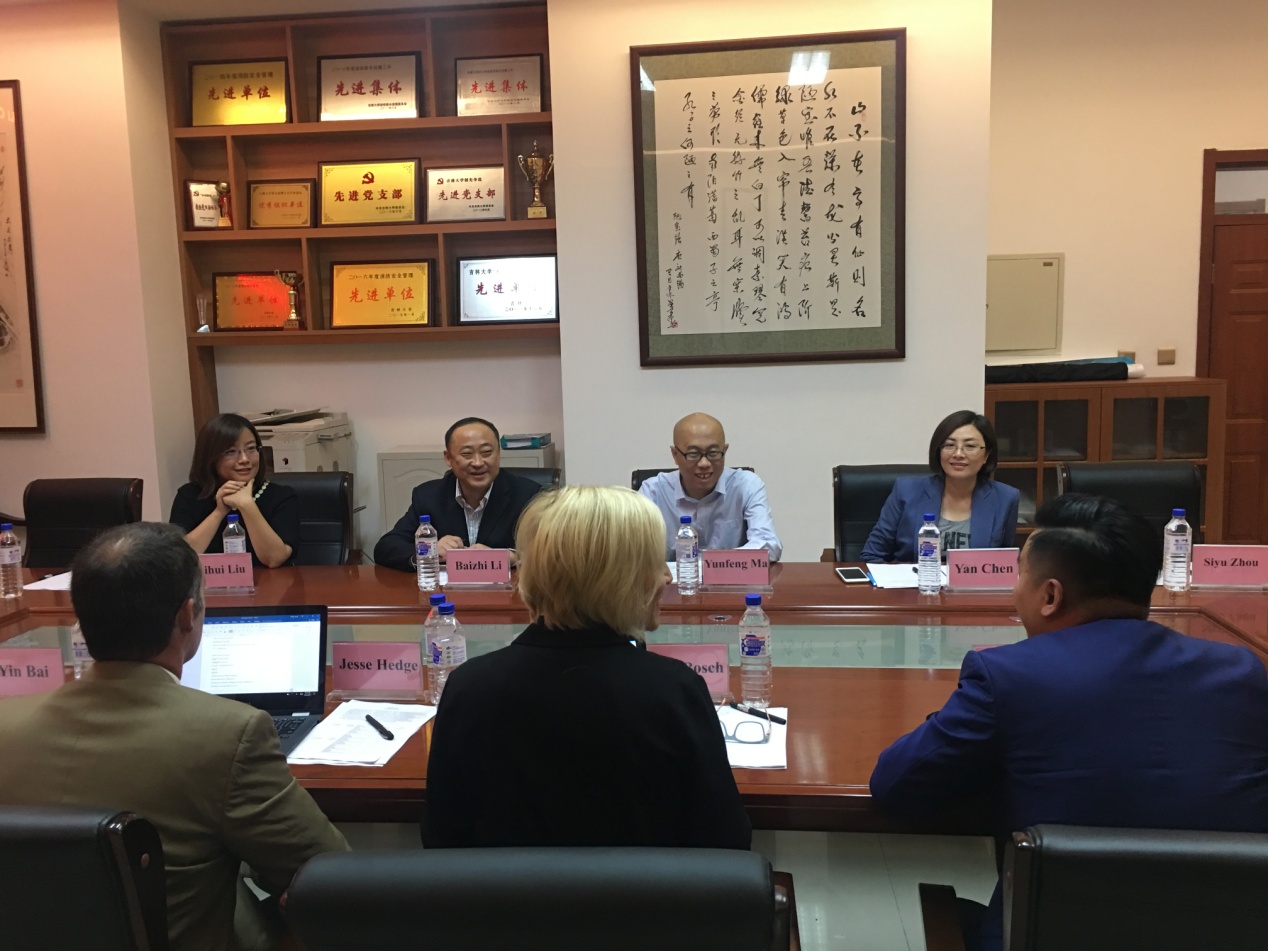 9月14日上午美国肯塔基大学文理学院本科生项目副院长安娜·博世、文理学院招生管理与决策支持副院长杰西·赫奇、文理学院国际学生项目协调员梅根·科苏尔巴及肯塔基大学驻华代表谢翔一行四人来访果冻传媒 ,并在学院335会议室举行了座谈。果冻传媒 党委书记李佰志、副院长马俊锋、副院长陈妍、副书记刘丽慧、学校国际合作与交流处综合科科长白茵等参加了会谈。 会谈中,李佰志书记首先对肯塔基大学代表团的来访表示欢迎,随后学院副院长马俊锋对果冻传媒 的基本情况进行了介绍,副院长陈妍向肯塔基大学代表介绍了本科生国际交流情况,并提出合作方向。肯塔基大学文理学院代表对我院的热情接待表示感谢,指出生物学科是肯塔基大学的优势学科,对与我院建立合作关系极为重视。之后双方就学生短期交流项目与2+2双学士学位项目等方面进行了商讨,就可能开展的实质性合作深入交换了意见并达成了初步的合作意向。 本次会谈开启了双方合作的大门,拓宽了我院国际交流领域,为双方进一步合作奠定了坚实的基础。