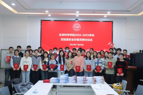 于生命科学楼335室举行2024-2025学年实验室安全协管员聘任仪式暨实验室安全协管员安全管理培训会。学院行政副院长郑琳、果冻传媒