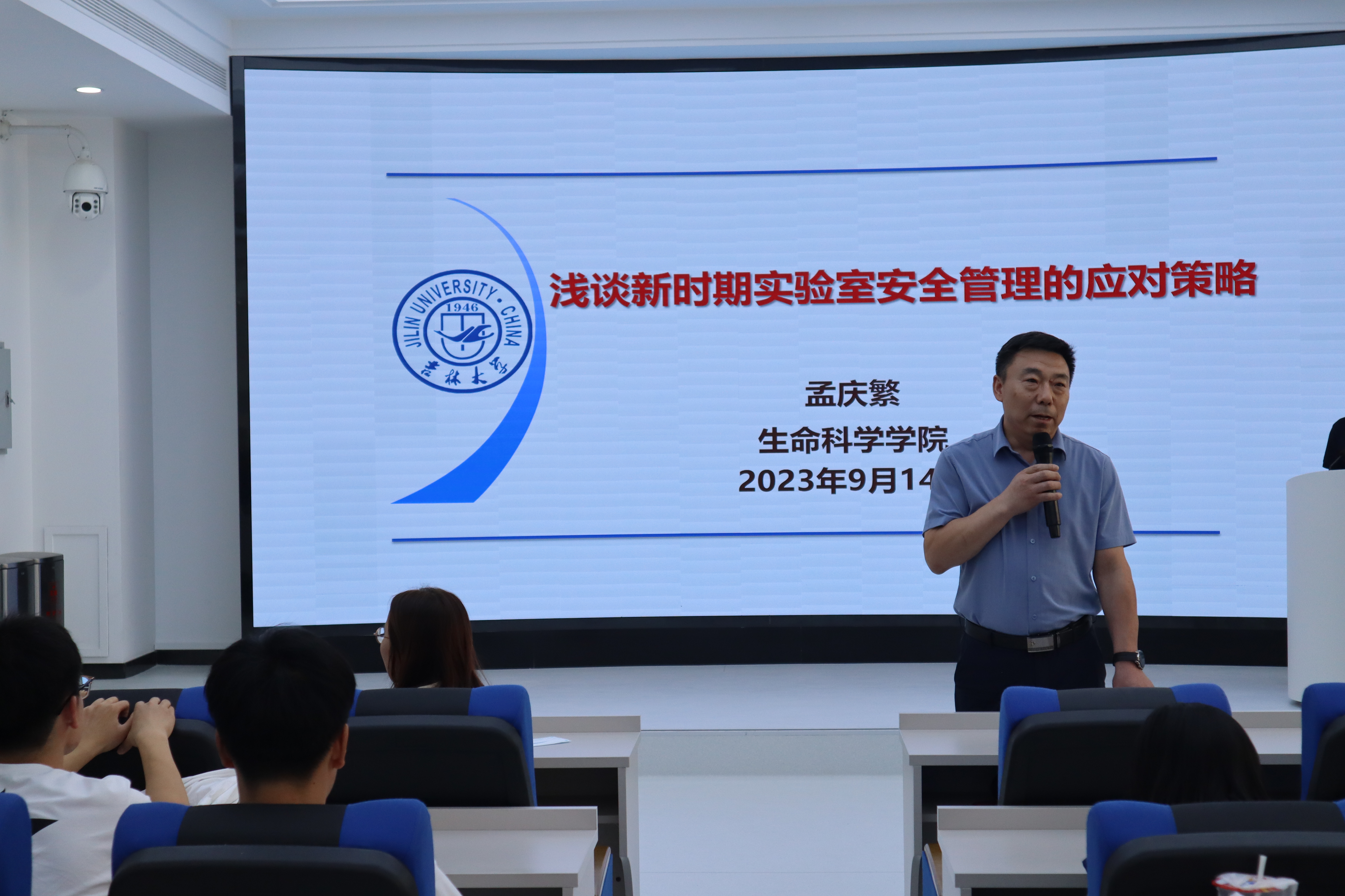 生物基础实验教学中心副主任孟庆繁老师为2023级研究生开展实验室安全教育主题讲座,学院党委副书记林相友主持讲座,研究生辅导员任中帅、2023级研究生新生参加讲座。