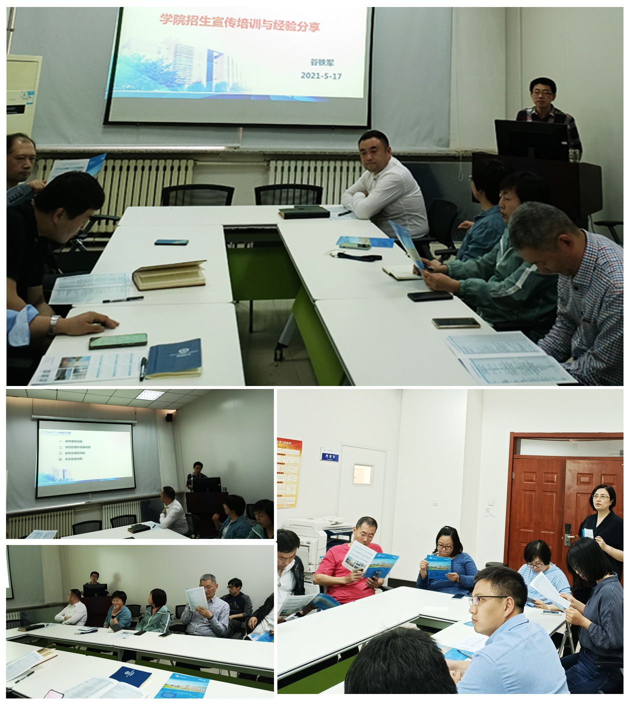 为深入推进学校本科招生宣传工作,提高生源质量, 5月17日我院组织参与2021年度招生宣传工作教师开展培训,学院党政领导高度重视招生宣传工作,参加本次培训会的有学院院长于湘晖、党委书记白宇、副院长陈妍,及承担招生宣传工作的各位专业教师。