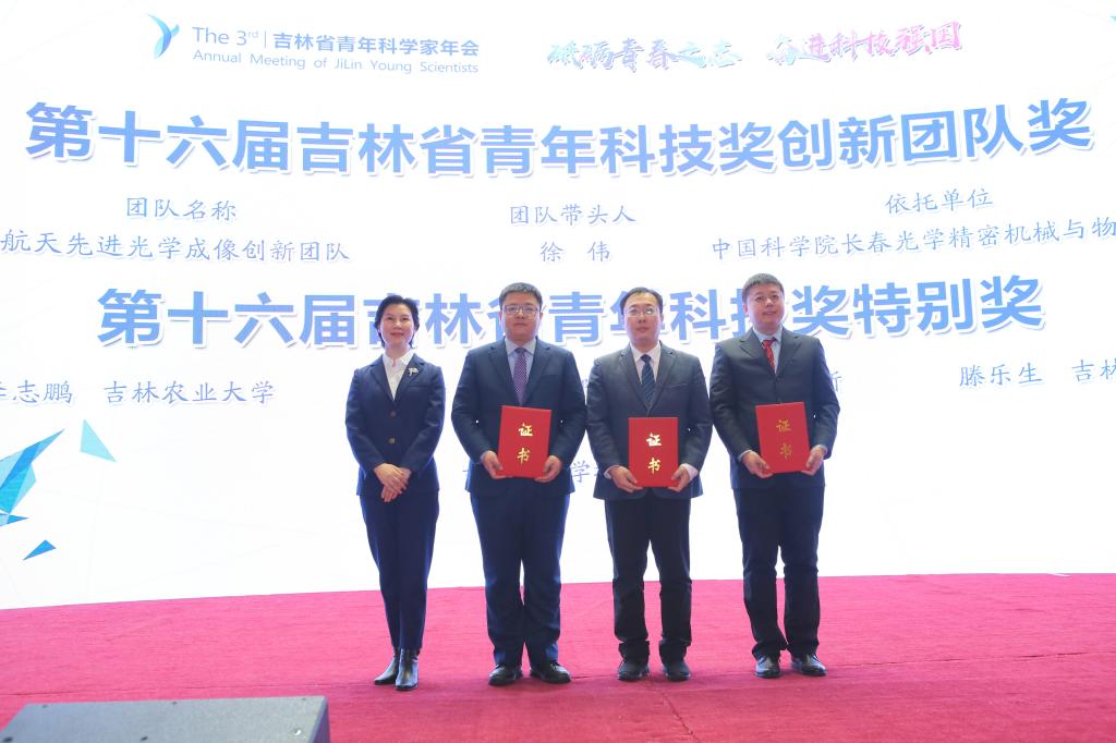 于吉红院士颁奖。据悉吉林省青年科技奖每两年评选一次,每次授予34人,其中特别奖仅授予3人。