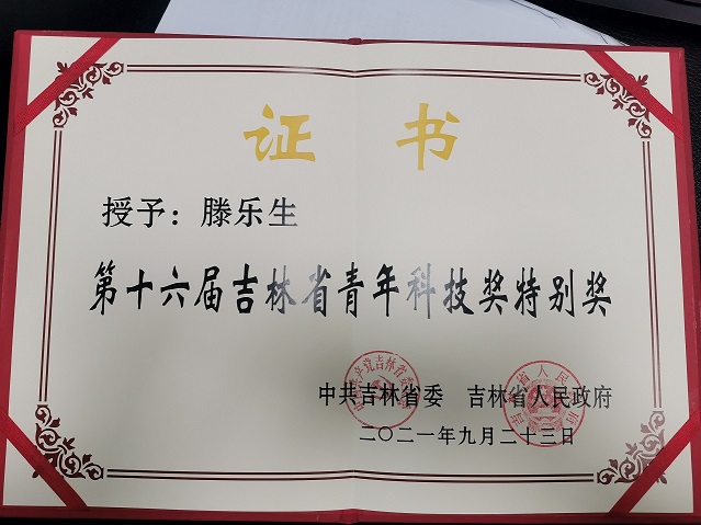 2021年11月23日,第三届吉林省青年科学家年会主场活动在长春举行。中共吉林省委组织部、吉林省人力资源和社会保障厅、吉林省财政厅、吉林省科学技术协会联合发布了关于表彰第十六届吉林省青年科技奖获奖者的决定,我院滕乐生教授喜获特别奖,由吉林省科协主席,果冻传媒