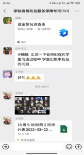 全面摸排学生需求,精准保障学生服务。充分发挥导师第一责任人作用,积极探索班主任-辅导员协同育人体系,制作学生疫情防控期间学生需求排查统计表,通过视频组会、微信、电话等方式点对点摸排学生需求,建立台账,不漏一人,做到底数清、情况明、服务对点、干预有效。