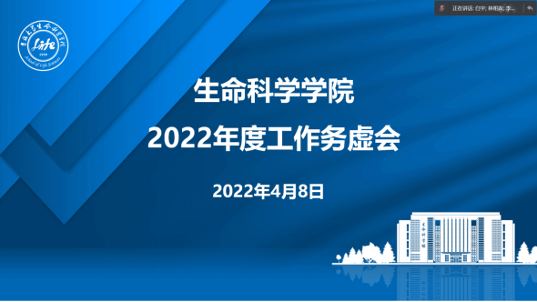 于4月8日下午召开线上2022年度工作务虚会,全面分析学院形势,审慎谋划工作思路。学院党政领导班子成员、教学委员会主任委员、党委办公室主任和学院办公室主任参会,党建工作联络员张兴林列席会议。会议由学院党委书记白宇主持。  本次会议主题是贯彻第十五次党代会精神,落实“三大工程”战略部署,推进一流学科建设。领导班子成员聚焦会议主题,结合分管领域和本职工作,深入思考学院建设发展的新动态、新情况和新问题,细致谋划新阶段工作开展的新重点、新方向、新思路。  院长马俊锋围绕“提升学科建设水平、提升人才培养质量、提升国际合作水平”发言,就如何提升学院的发展规划与学科建设、研究生培养、国际交流合作水平提出建议。副院长陈妍围绕“面向一流学科建设,提升人才培养质量,推进专业教育与思政教育同向同行”发言,提出要围绕“课程思政攻坚行动计划”,推进专业教育与思政教育同向同行;围绕“本科教育固本求新计划”,推进“双一流”建设,提升人才培养质量。教学委员会主任委员滕利荣对如何在实验教学中开展课程思政,加强虚拟实验室建设提出建议。副院长崔银秋围绕“提升科研管理和人才管理水平,建设一流师资队伍”发言,提出要加强加大平台建设力度,整合科研方向,培育交叉学科,建立科研评价和激励机制,在科研管理上求突破;要坚持引育并举,拓宽人才引进渠道,培育现有的青年骨干,支持科研团队建设,在人才管理上下功夫。副院长李全顺围绕“以学校‘平台工程’建设为抓手,构建一流学科科研与保障平台”发言,就如何加强分子酶学工程教育部重点实验室、生命科学公共技术中心管理和建设提出工作想法。党委副书记林相友围绕“聚焦立德树人,做好研究生管理和思政教育,聚焦社会需求,实现高质量校企合作”进行主题发言,从推进研究生就业工作、推动“三全育人”向纵深发展、协同做好日常安全管理工作三个方面提出下一步工作思路举措。党委副书记兼副院长、纪委书记刘柏岩围绕“立足‘引领工程’,聚焦铸魂育人,不断探索有红专底色、生科特色的思政体系”发言,提出要立足和围绕学校“引领工程”,服务学校“平台工程”和学院一流学科建设,融入学校“基础工程”,结合生物学学科特点与生命科学学生特点,构建有吉大底色、生科特色的思政工作体系。行政副院长崔帅围绕“以一流的行政管理服务保障学院高质量内涵式发展”发言,指出要立足学院实际,坚持问题导向、目标导向和实效导向,坚持以师生利益为核心,以实实在在推动学院各项事业发展为宗旨,在聚焦提升服务能力、加强基础保障、丰富支撑载体上下功夫。  院长于湘晖以“立足前沿、面向未来,推进生物学一流学科建设”为题做会议报告。她指出,面向建设一流生物学科,要凝练科研方向,发挥传统优势,对标学科发展动态、国家需求和区域发展需要,建设生物学特色一流学科;要鼓励交叉合作,激发内生动力,探索学科发展新增长点;要发挥共建力量,协同参加单位,共同谋划学科发展;要瞄准世界前沿,对标中国特色、世界一流,打造富有生机的科研高地。面向建设一流人才高地,要坚持善于“引”才,切实增强高端人才引进力度,做好相应保障,优化人才队伍结构;要坚持善于“育”才,把握人才成长规律,加大帮扶力度,构建“生态”良好的人才考核、奖惩机制;要坚持善于“用”才,盘活人才资源,激发创新活力,打造人才中心和创新高地。  |