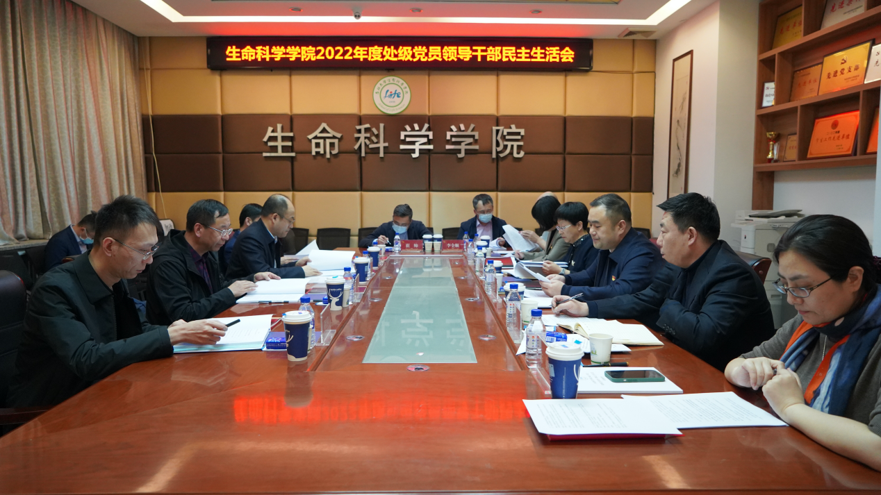 在生命科学楼335会议室召开2022年度处级党员领导干部民主生活会。学校党委常委、副校长马琰铭出席会议;学校第八督导组组长、党建工作联络员蒲韶华,督导组成员吕培庆、蒋红阳全程参会指导;学院党员处级领导干部参加会议,院长于湘晖应邀列席。会议由党委书记白宇主持。