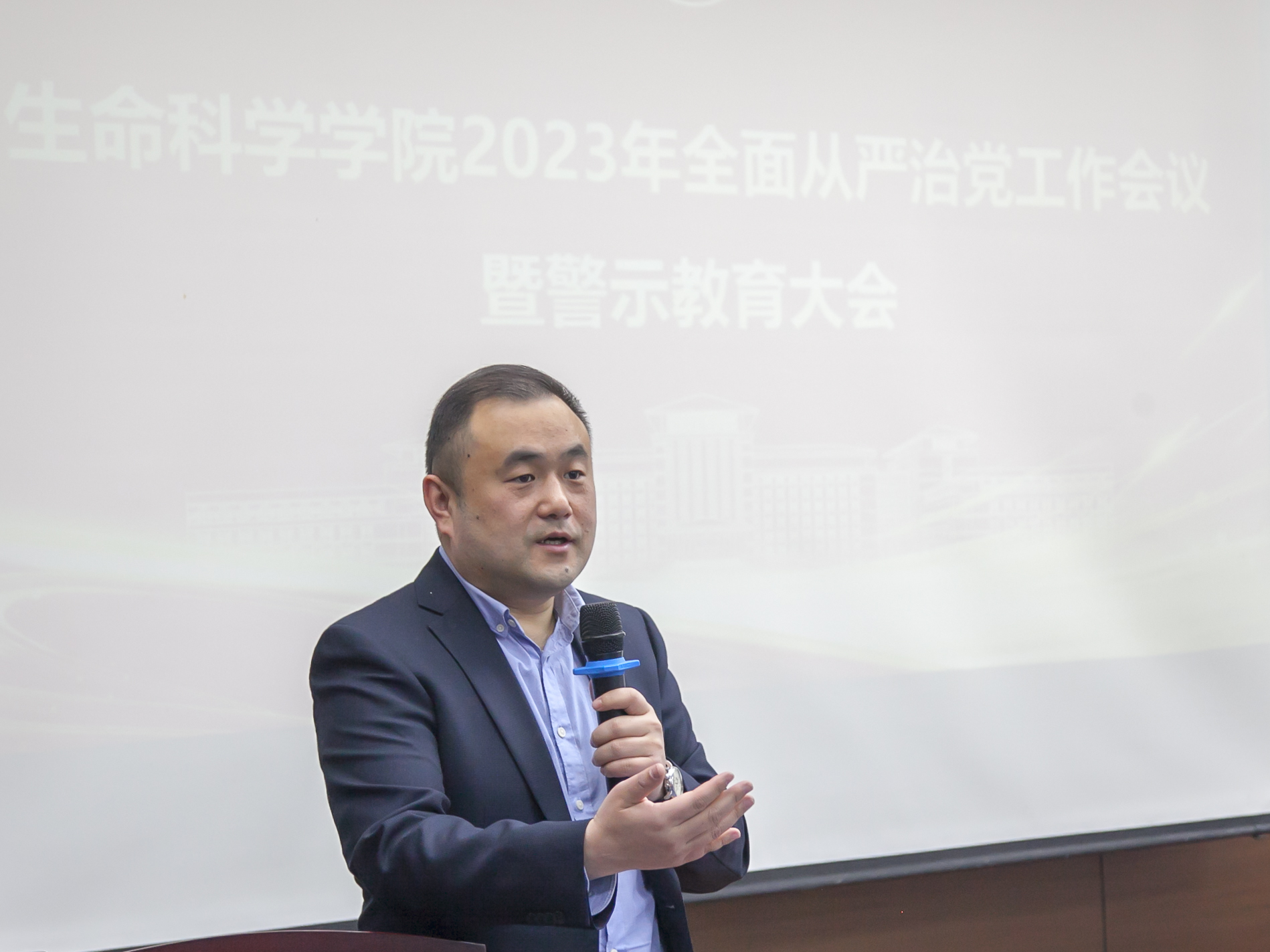 学院党委书记白宇回顾了过去一年学院全面从严治党工作,传达了学校全面从严治党工作会议暨警示教育大会会议精神,并对2023年度学院全面从严治党工作提出具体要求。他指出,今年是全面贯彻落实党的二十大精神的开局之年,要紧扣党的二十大精神主题,旗帜鲜明讲政治,以党建争先引领发展。学院各级党组织要坚定政治立场、增强政治觉悟、提高政治站位,切实把增强“四个意识”、坚定“四个自信”、做到“两个维护”落实在行动上。要自觉地从政治大局和战略全局高度思考谋划工作,不断推进全面从严治党向基层延伸,层层传导,凝聚合力。要强化工作落实,时刻保持清醒、保持定力,筑牢廉政底线,坚定不移的推进全面从严治党工作,不断营造从严从实的管党治党氛围。