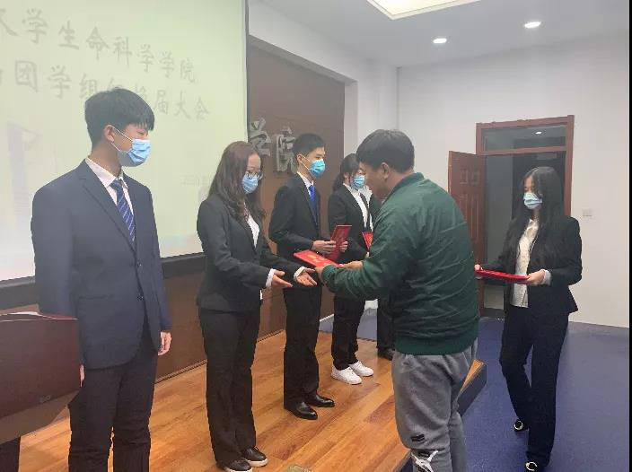 团学联组织学生干部名单。接着,于佳宁老师、齐鹏老师、丁子芮老师分别为团学组织主要学生干部颁发聘书,并合影留念。