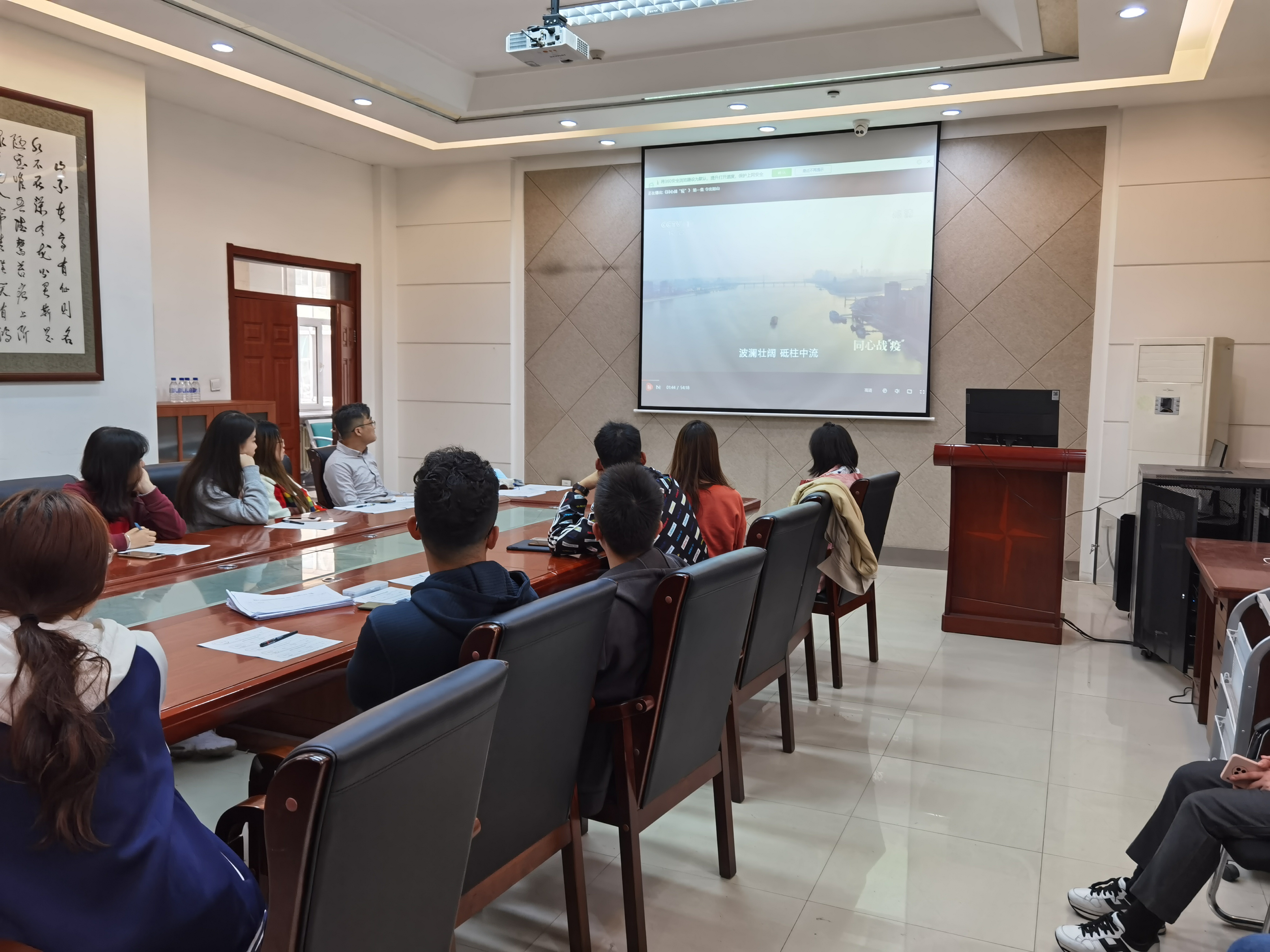 活动中期,参与本次活动的师生共同观看了纪录片《同心战“疫”》的片段。该纪录片记录了中国共产党带领中国人民艰苦卓绝的抗疫斗争画面,展现了中华儿女风雨同舟、齐心协力战胜一切困难的智慧和力量。“精神是一个民族赖以长久生存的灵魂,唯有精神上达到一定的高度,这个民族才能在历史的洪流中屹立不倒、奋勇向前。”果冻传媒