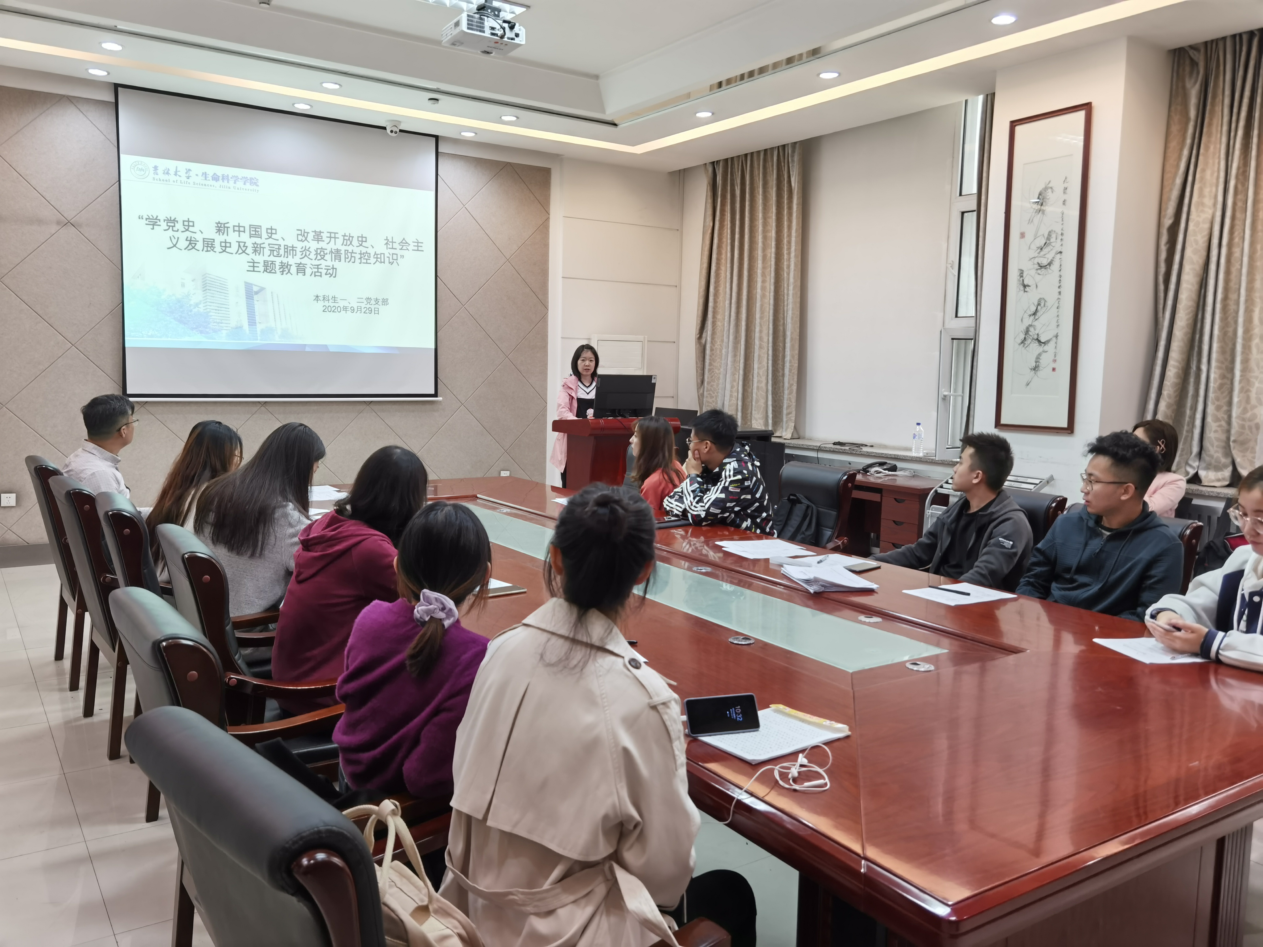 本科生第一、二党支部于生科楼335会议室开展了“学党史、新中国史、改革开放史、社会主义发展史及新冠肺炎疫情防控知识”主题党日活动,张春阳老师、丁子芮老师、齐鹏老师、崔帅书记以及党支部全体党员参加了此次活动。