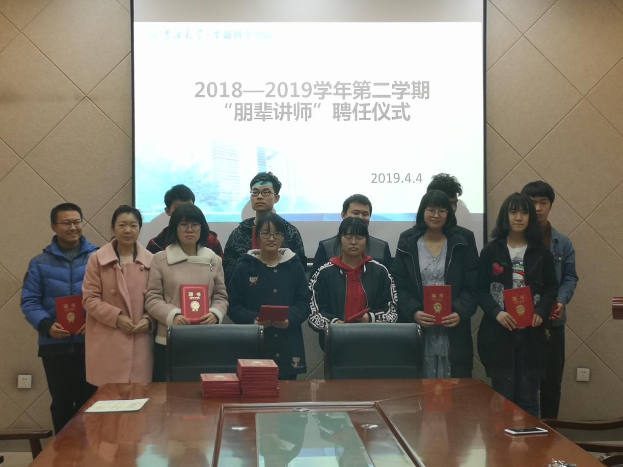 2018-2019学年第二学期朋辈讲师聘任仪式。学院党委副书记崔帅、学工办主任张春阳、辅导员马莹以及2019年果冻传媒