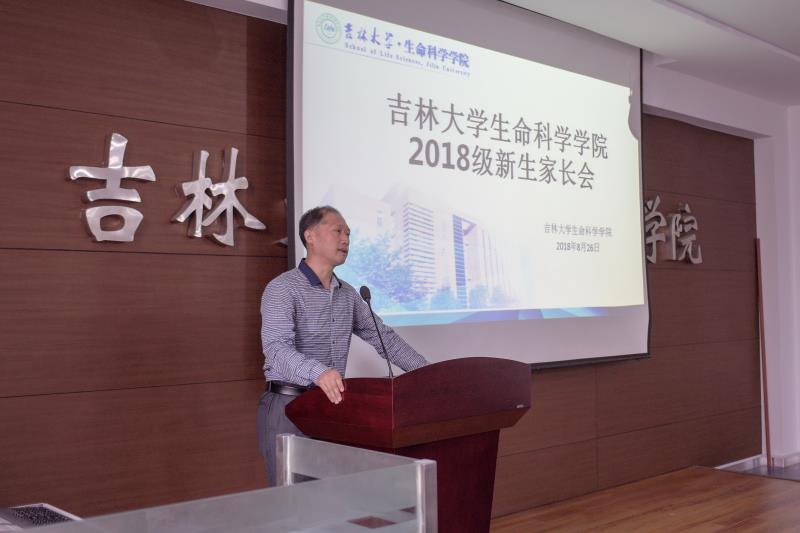 在生命科学楼107室召开新生家长会。学院党委书记李佰志,副院长崔银秋、陈妍、马俊锋(生物化学与分子生物学系),副书记崔帅,学院微生物学与免疫学系主任吴永革教授、细胞生物学与生物物理学系主任徐力教授、生物药学系主任高波教授、生物工程系黄宜兵副教授,2018级新生辅导员丁子芮参加会议。家长会由崔帅主持。