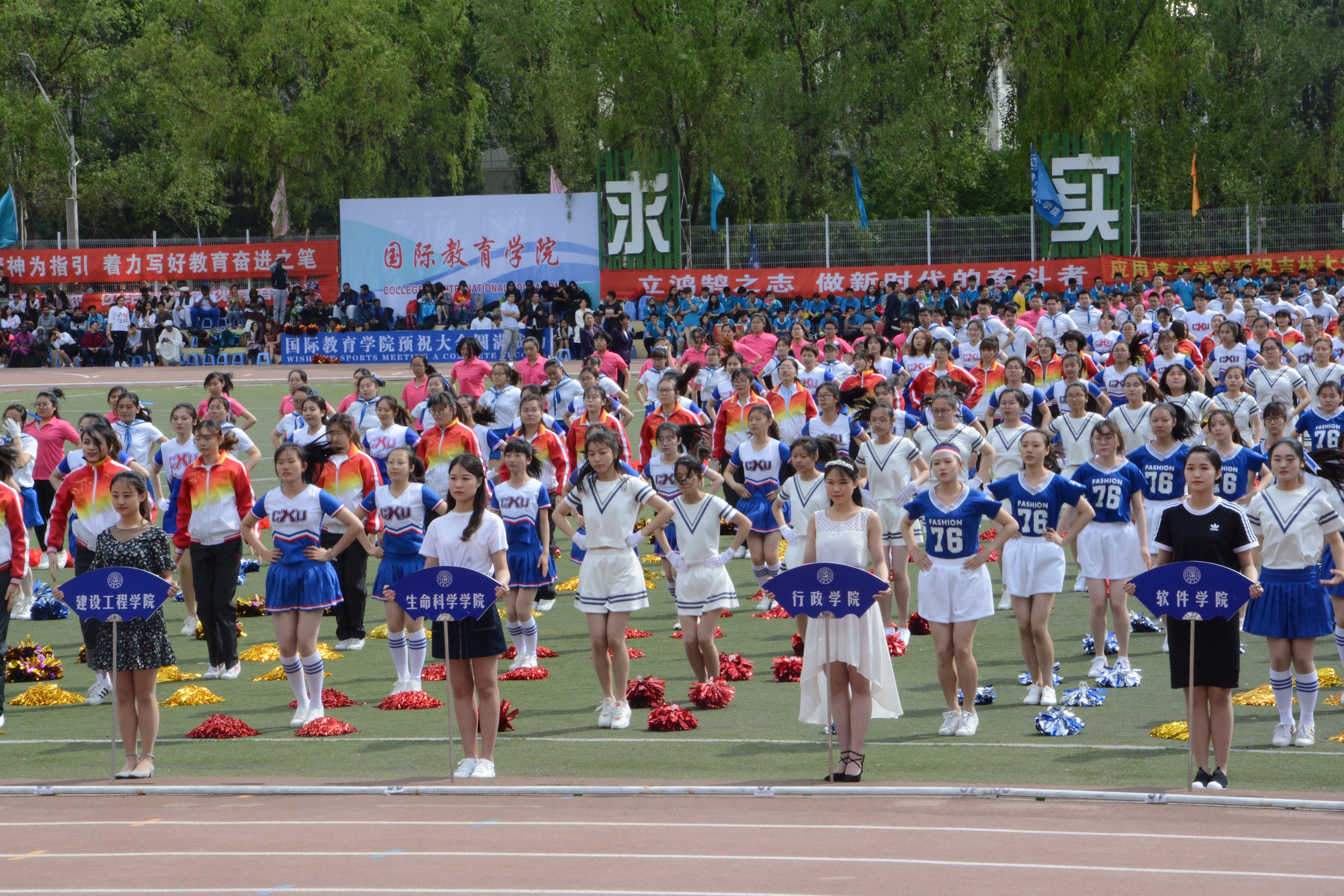 这是我院首次将啦啦操带入运动会赛场,同学们都格外认真,全力以赴地投入排练。他们每日清晨与曙光邂逅,暮夜与星光相伴而归,一丝不苟的排练着。自简单的分解动作练起,奋勉地一遍遍训练,到完成一套动感十足的啦啦操,他们即使汗流浃背,也没有丝毫懈怠,切身感受到了累并快乐着的含义。因为投入,因为热爱,因为代表着果冻传媒