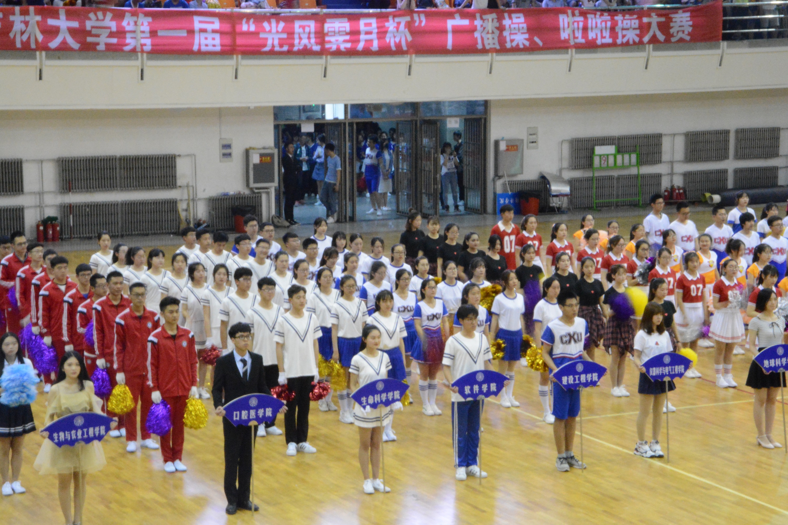 组织44位本科生同学参加本次广播操-啦啦操大赛,并从五月上旬起就安排了紧锣密鼓的排练。