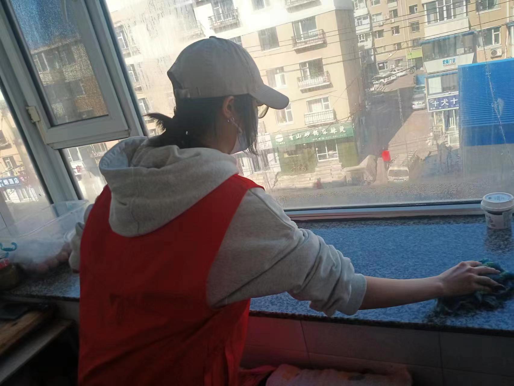 志愿者来到长春市朝阳区开工社区开展主题志愿活动。隋帅等3名同学在社区工作人员的带领下来到高龄老人家中拜访,帮助老人打扫房间并陪着他们聊聊家常。焦陆洋等9名同学来到社区所辖小区,对居民楼内的小广告进行清除,并对园区内的零散垃圾进行拾取整理。同学们的志愿服务工作得到了社区工作人员和小区居民的一致好评。