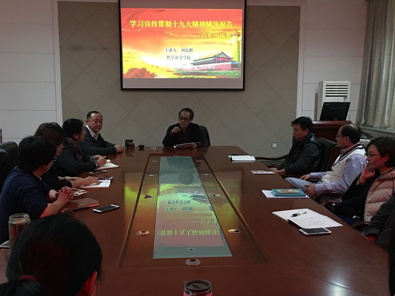 学院党委书记李佰志总结时提出,刘连朋老师的辅导报告从中国传统文化角度,结合中国近代以来百年历史进程和社会主义在中国的传播、发展历史,以百年中国梦为主题,从文化视角帮助我们领会、学习十九大精神,使我们对十九大报告有了更为深入和切近的认识,希望大家今后继续坚持学习,反复研读,不断深入思考、深化认识,提高政治站位,强化责任担当,始终在政治上、理论上和行动上与党中央保持高度一致。