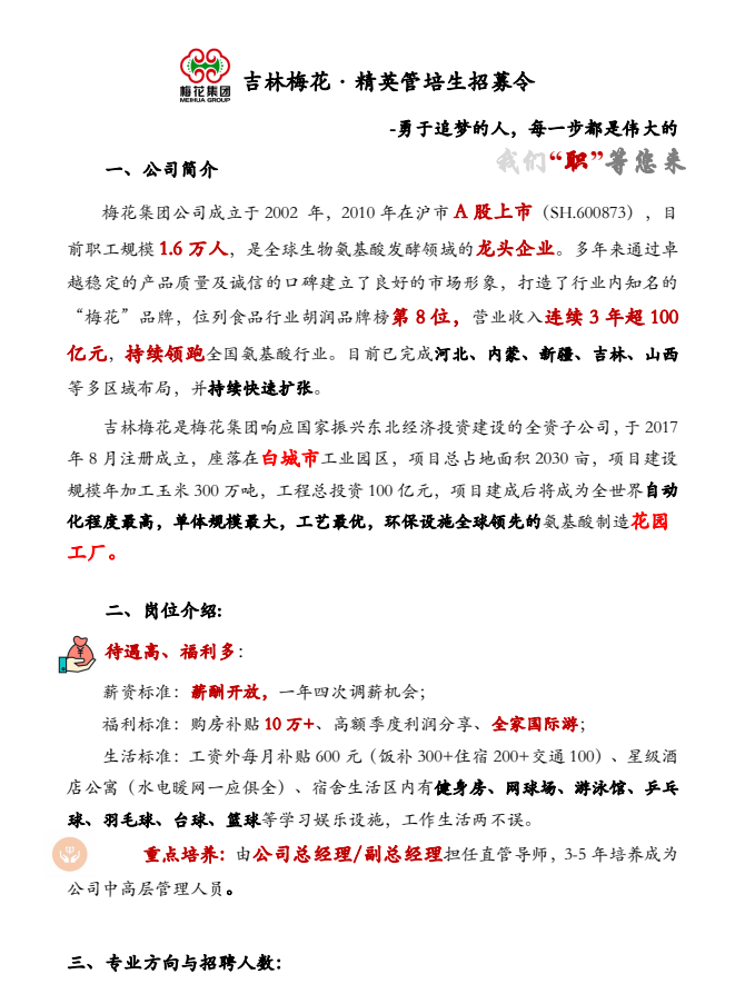 未来可期就业季-梅花集团公司招聘公告