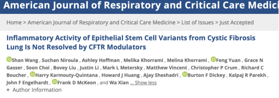 校友、浙江大学医学院附属口腔医院百人计划研究员王杉等人应用干细胞变异体的单细胞克隆技术,探讨了囊性纤维化患者肺部炎症的潜在来源,试图回答是否存在一种可能有助于患者炎症的干细胞异质性,并测试了CFTR基因治疗或CFTR调节剂药物减轻这种炎症的潜力。该研究以Inflammatory Activity of Epithelial Stem Cell Variants from Cystic Fibrosis Lung Is Not Resolved by CFTR Modulators 为题,发表在American Journal of Respiratory and Critical Care Medicine 杂志。